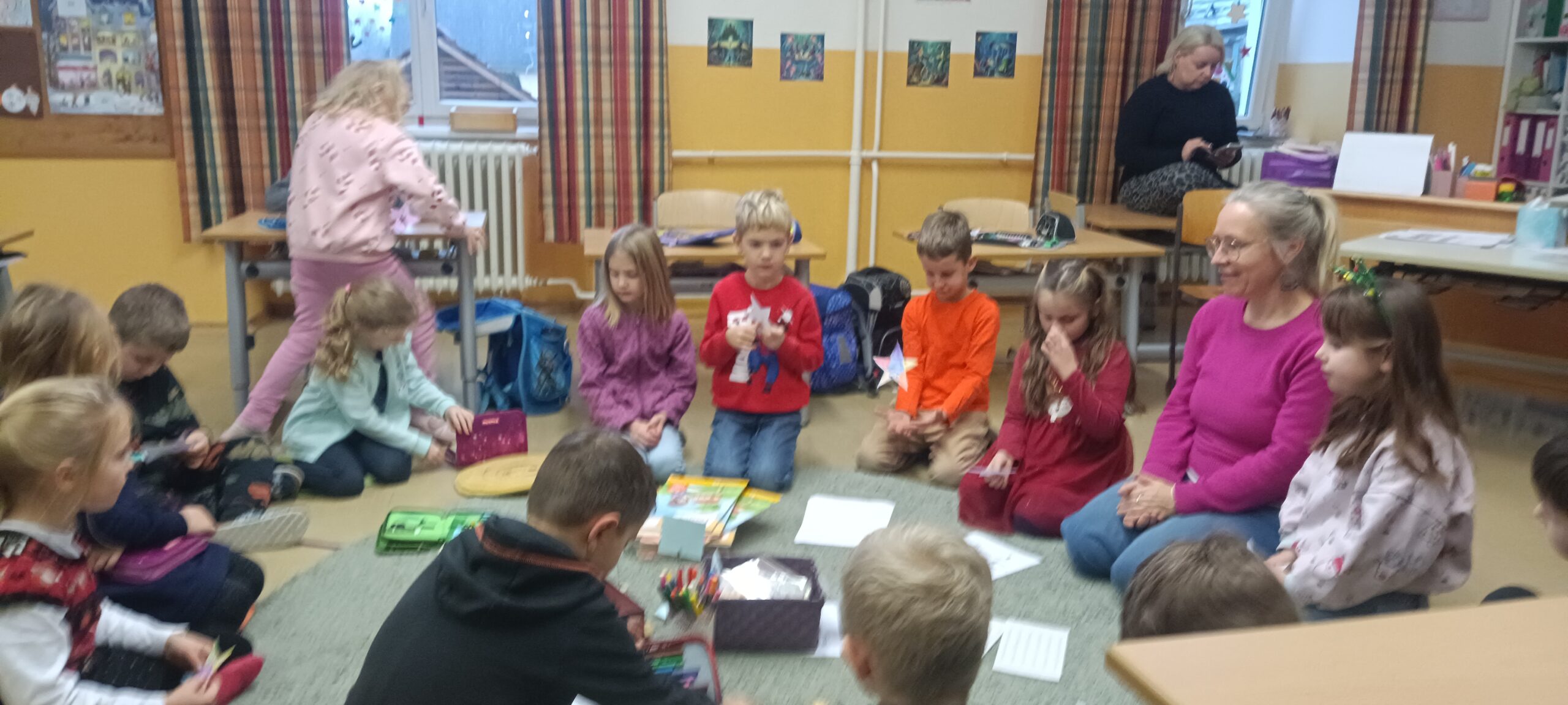 Lesung mit Verena Mayr, die Ritterhexe und das Rentierschlitten Pferd – SchülerInnen mit ihren Mutsternen