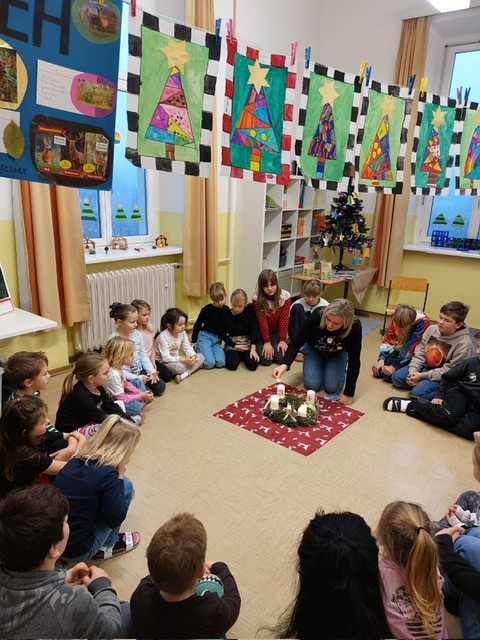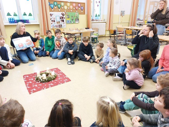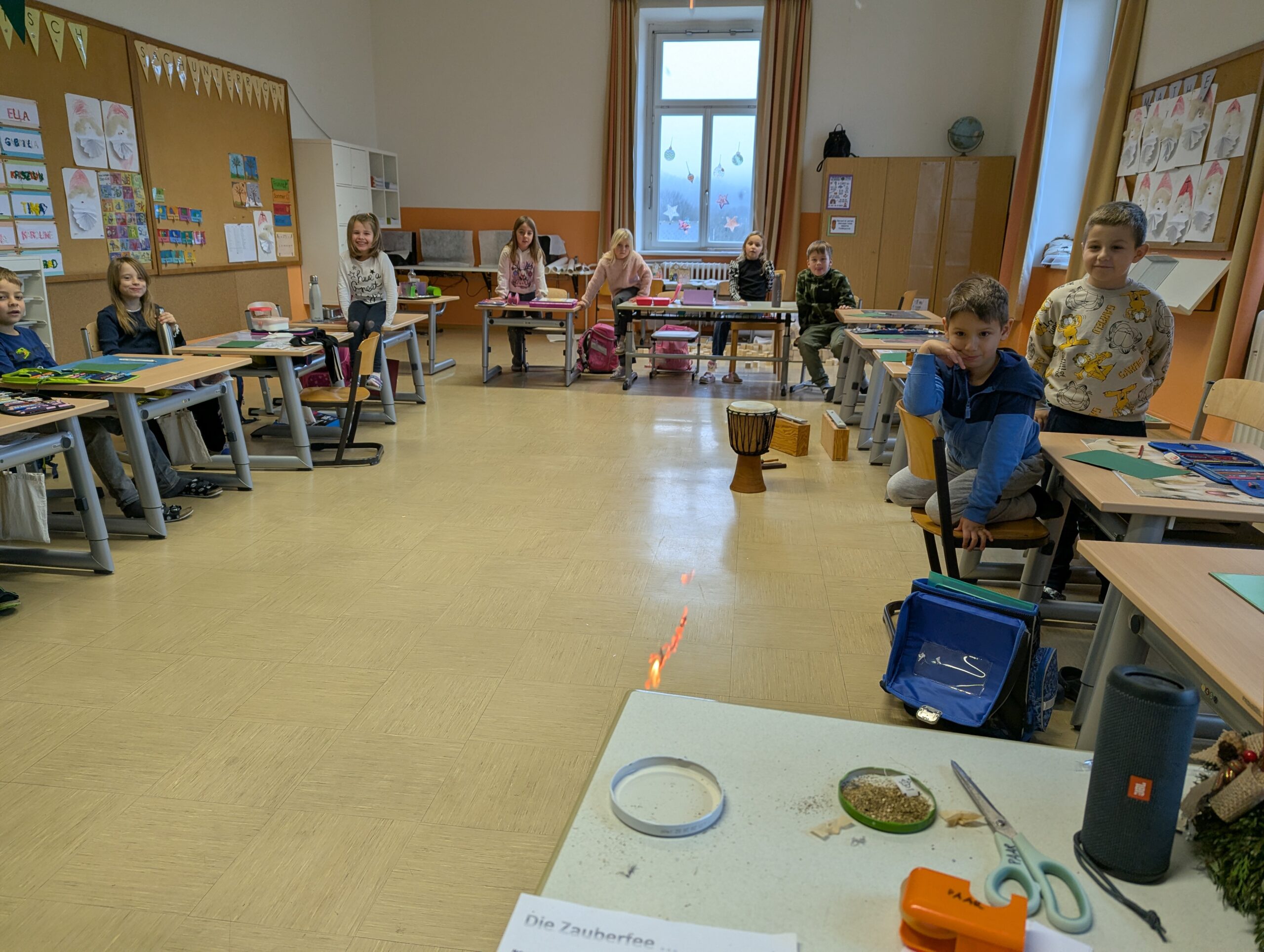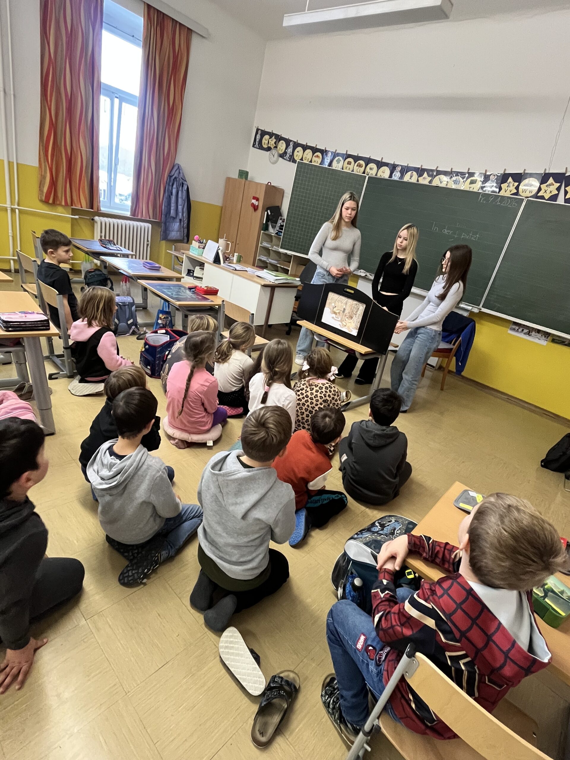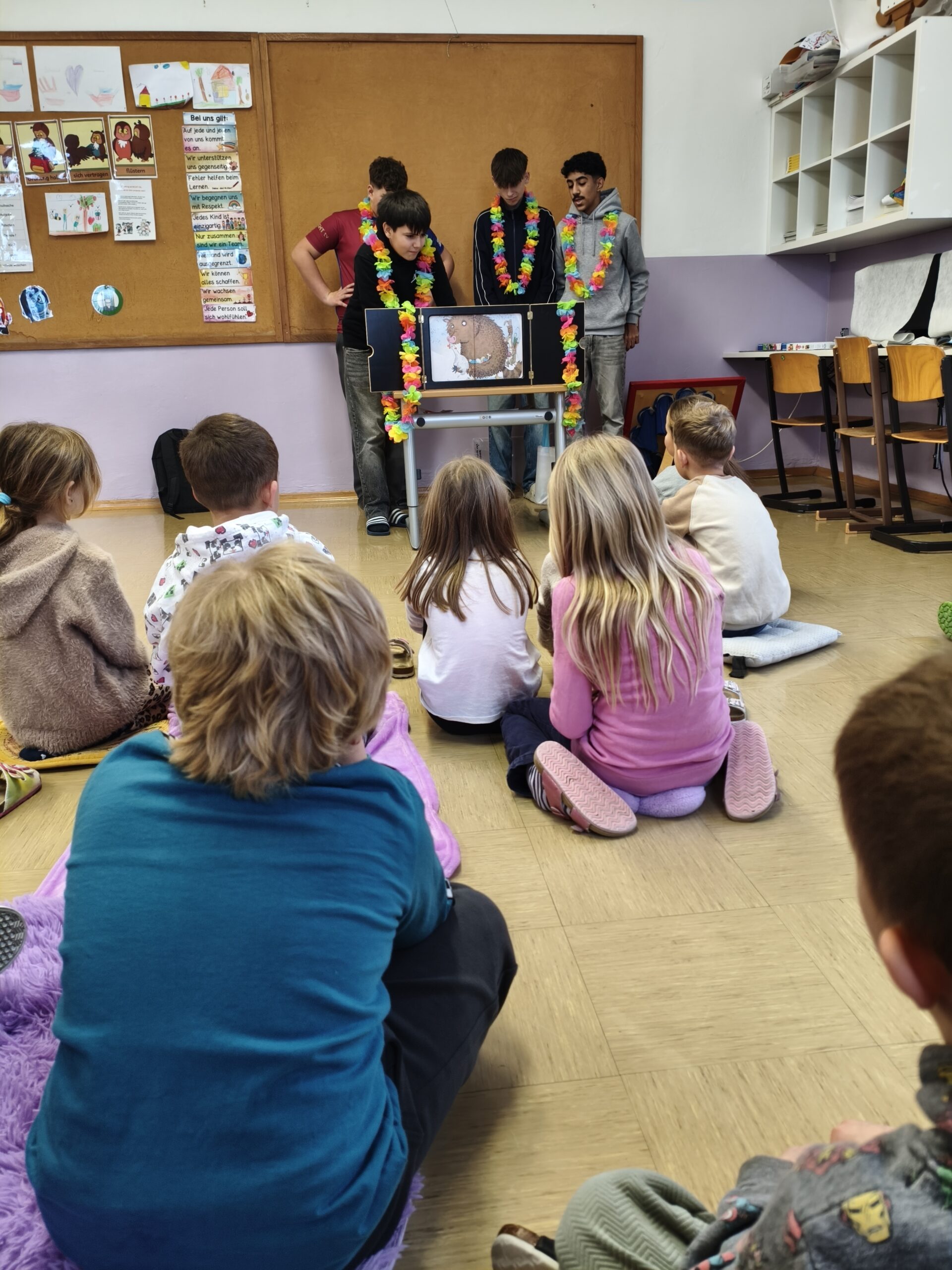 Kamishibai-Vorführung von den Schülern und Schülerinnen der MS Mureck - es war ein literarisches Erlebnis für die Schüler der 2. Klassen